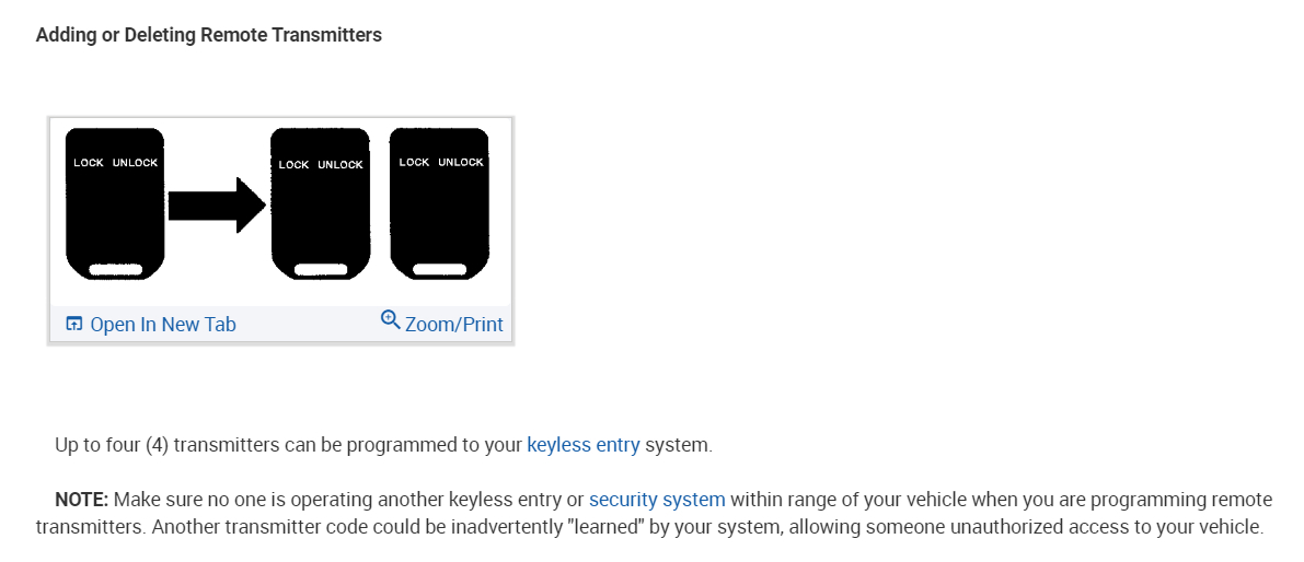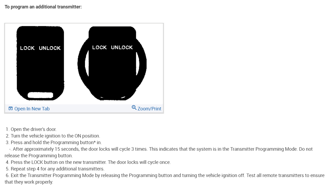 6. Exit the Transmitter Programming Mode by releasing the Programming button and turning the vehicle ignition off. Test all remote transmitters to ensure that they work properly.