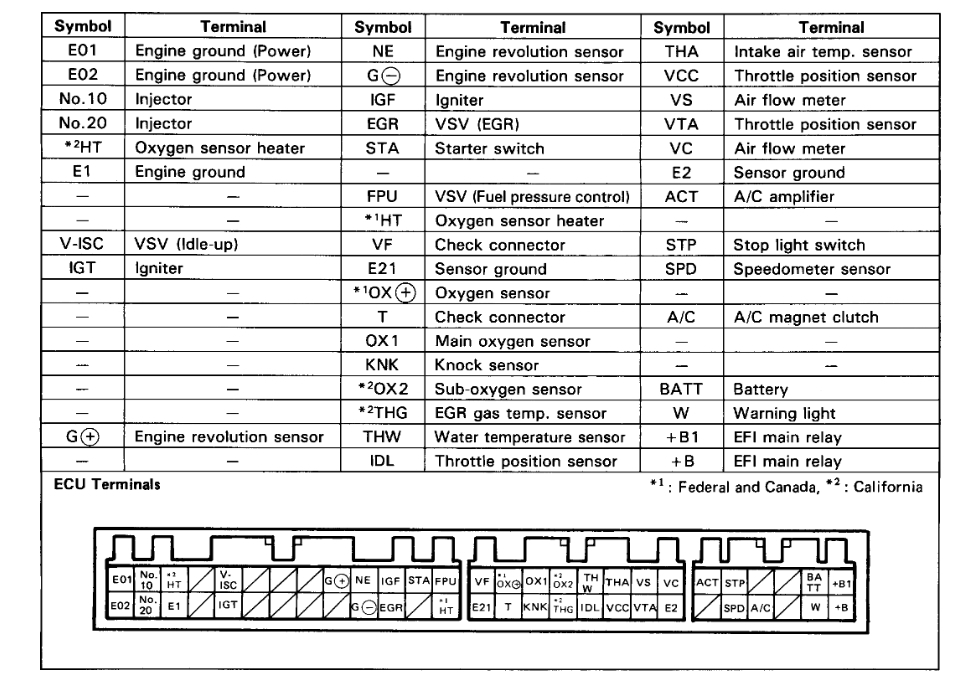It could be the vehicle speed sensor, mounted on the back of the instrument cluster, is used to monitor actual vehicle speed. Vehicle speed information is used by the ECU for fuel injection, air injection (on equipped vehicles), cruise control and electronic control of automatic transmissions. The VSS inputs the ECU through terminal SPD. It can be tested