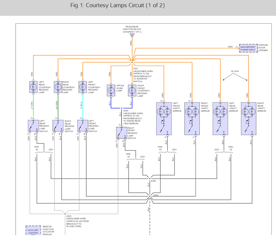 Interior lights quit working. Door switches nor light switch will turn them on. Also trunk release switch does not work.