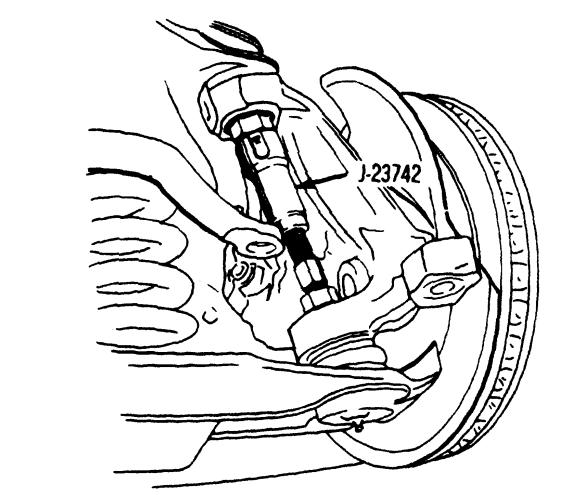 7. Remove lower ball joint from the steering knuckle using tool J-23742.