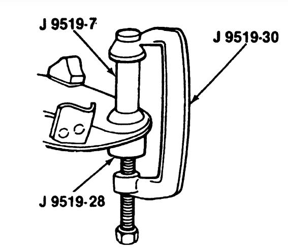 The following procedure requires the use of a ball joint remover/installer set (the particular set may vary upon application but must include a clamping-type tool with the appropriately sized adapters) and a ball joint separator tool, such as J-23742.