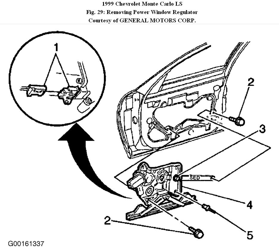 6. Remove the window regulator bolts (2). See Fig. 29.