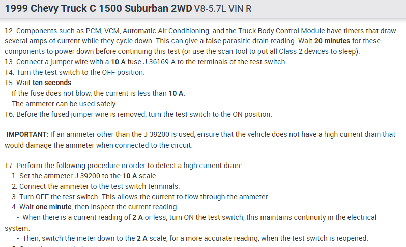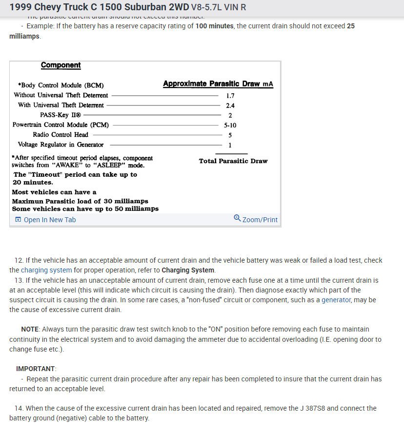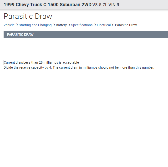 This vehicle should have a parasitic draw of less than 25 milliamps