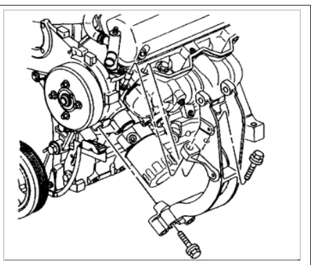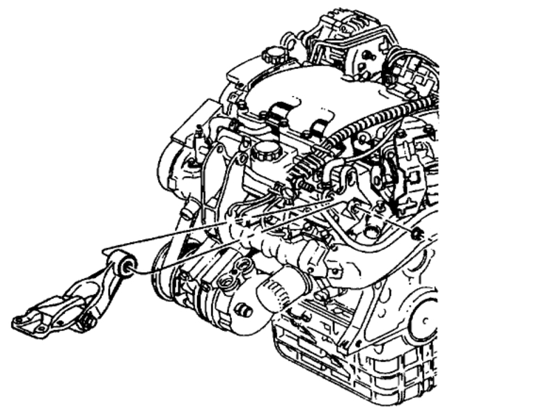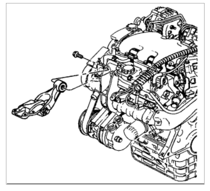 Remove the engine mount strut from the engine mount strut bracket at the upper radiator support. Remove the engine mount strut bracket bolts from the engine mount strut bracket. Remove the engine mount strut bracket from the upper radiator support.