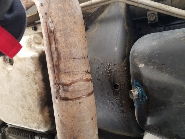 I found a exposed hole underneath my truck between the oil and transmission pans. I'm not sure if a plug is supposed to be here or not but it appears it may be leaking coolant from this hole. Any ideas on the part name and if a plug is needed? Thanks in advance for the help! -David ( Chevrolet c2500 )