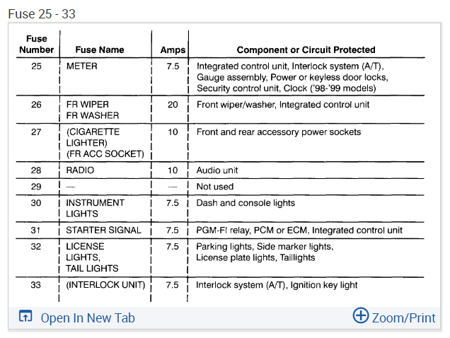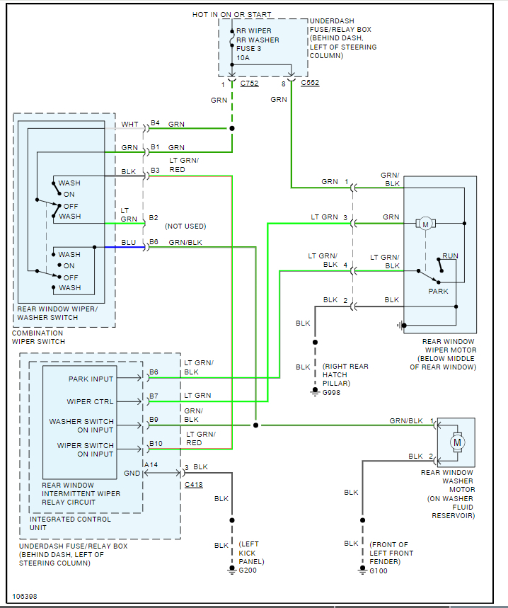 No dome/map light, rear wiper, key chime or key illumination, everything as far as I know. Checked the rear wiper fuse and under hood dome light fuse. Rear wiper and washer on same fuse and the rear washer work. Any ideas?