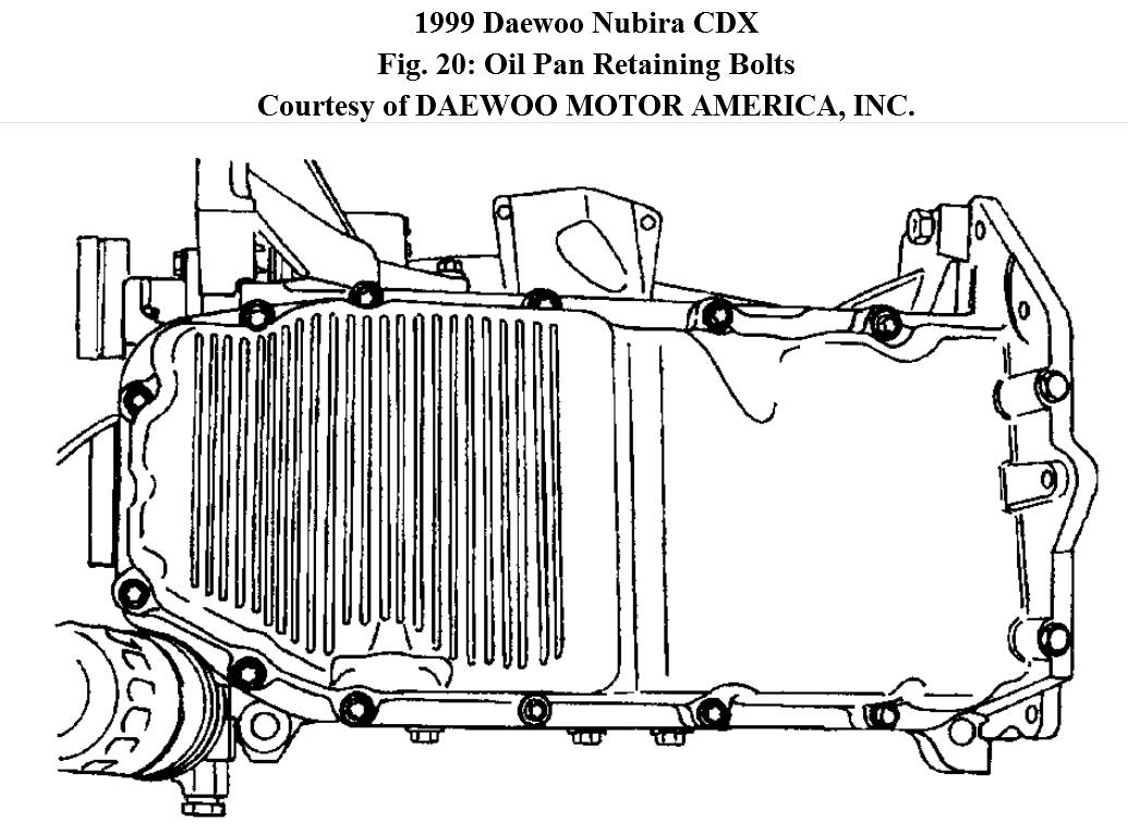 1. Clean oil pan sealing surface. Clean engine block sealing surface. Clean oil pan retaining bolts.