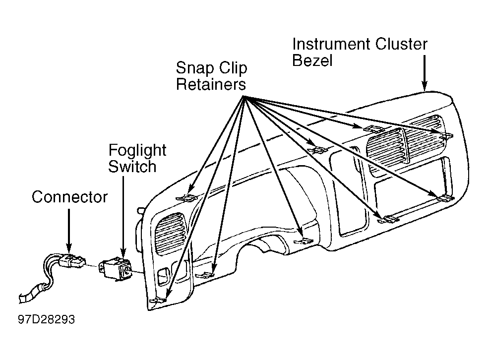 Pull instrument cluster bezel back far enough to unplug fog lamp switch, if equipped.