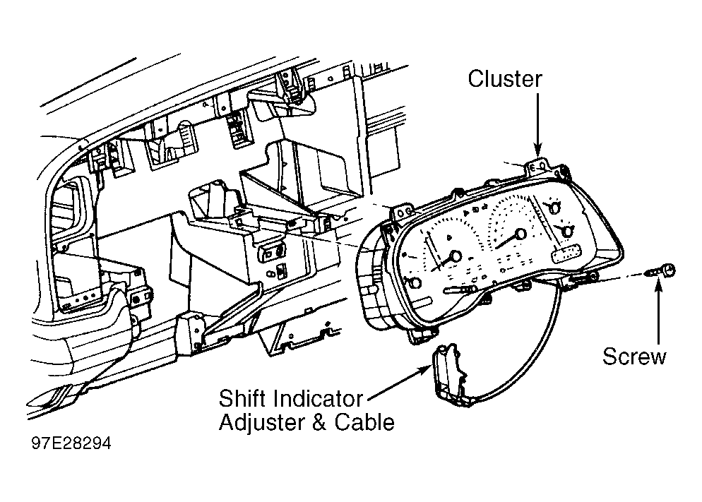 Move cluster rearward. On A/T equipped models, remove shift indicator.
