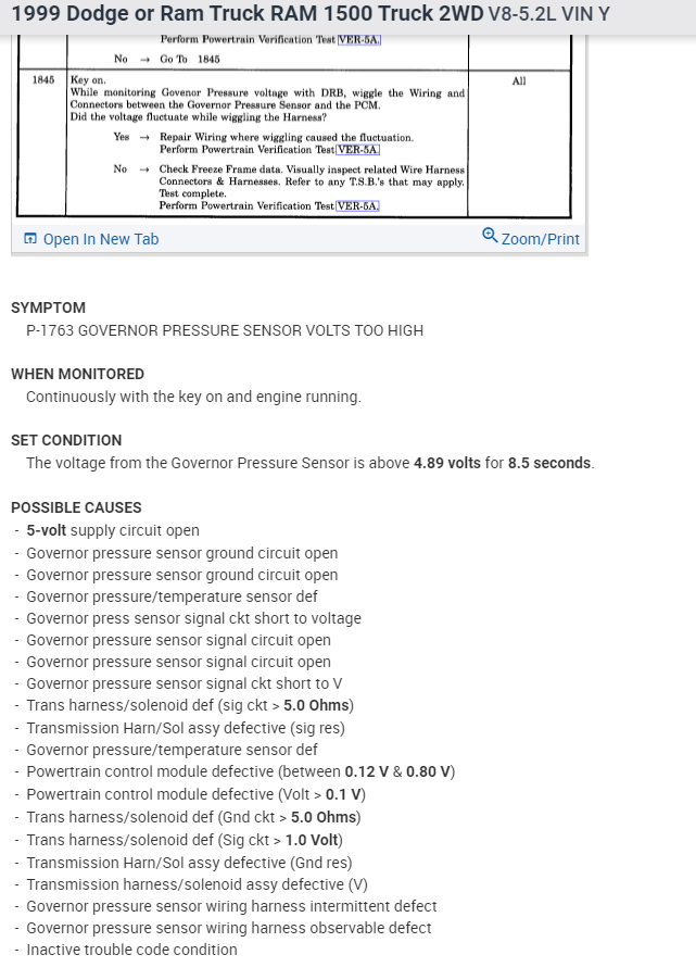 My check engine light came on earlier this past week. I had my local auto parts store check to see what code/s it was pulling. The only one that came up was P1763. The Governor pressure sensor input is to high. I am wondering if replacing the pressure sensor and the solenoid will fix this issue? The truck still runs but it accelerates very slow from a stop. Any information will be helpful. If there is any more info you need let me know so I can get it to you. Thank for the help.