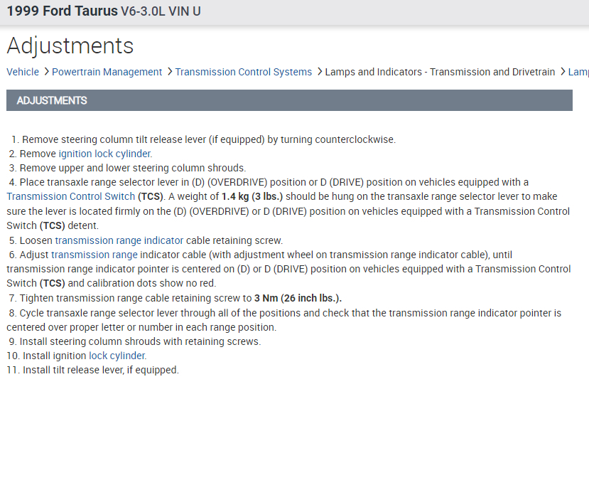Not shifting to correct position. Indicator shows D but car is in neutral. Indicator shows D2 when car is in drive. Car will not start when placed in park position. Starts in D position.