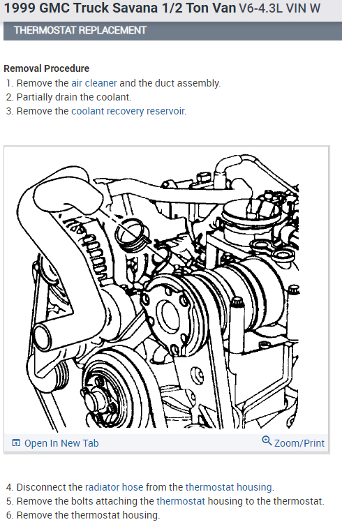 I have attached thermostat replacement procedure on your GMC Savana 4.3L V6.