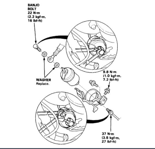 4. Remove the Banjo Bolt and the Fuel Feed Pipe from the Fuel Filter, then support with the other wrench.