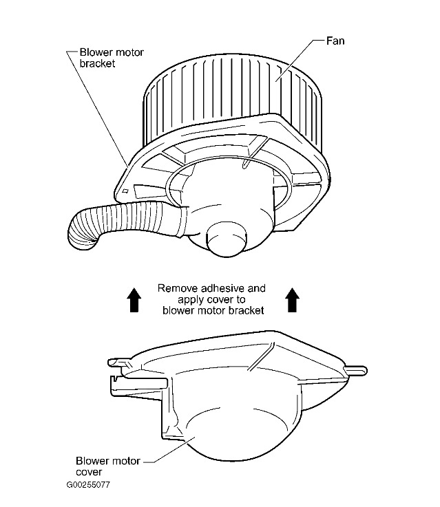 Peel the protective coverings from the adhesive strips on the blower motor cover (see Fig. 1 for adhesive strip locations).