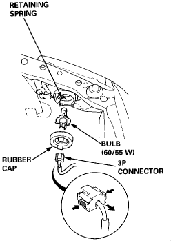 Pull the retaining spring away from the bulb, then remove the bulb.