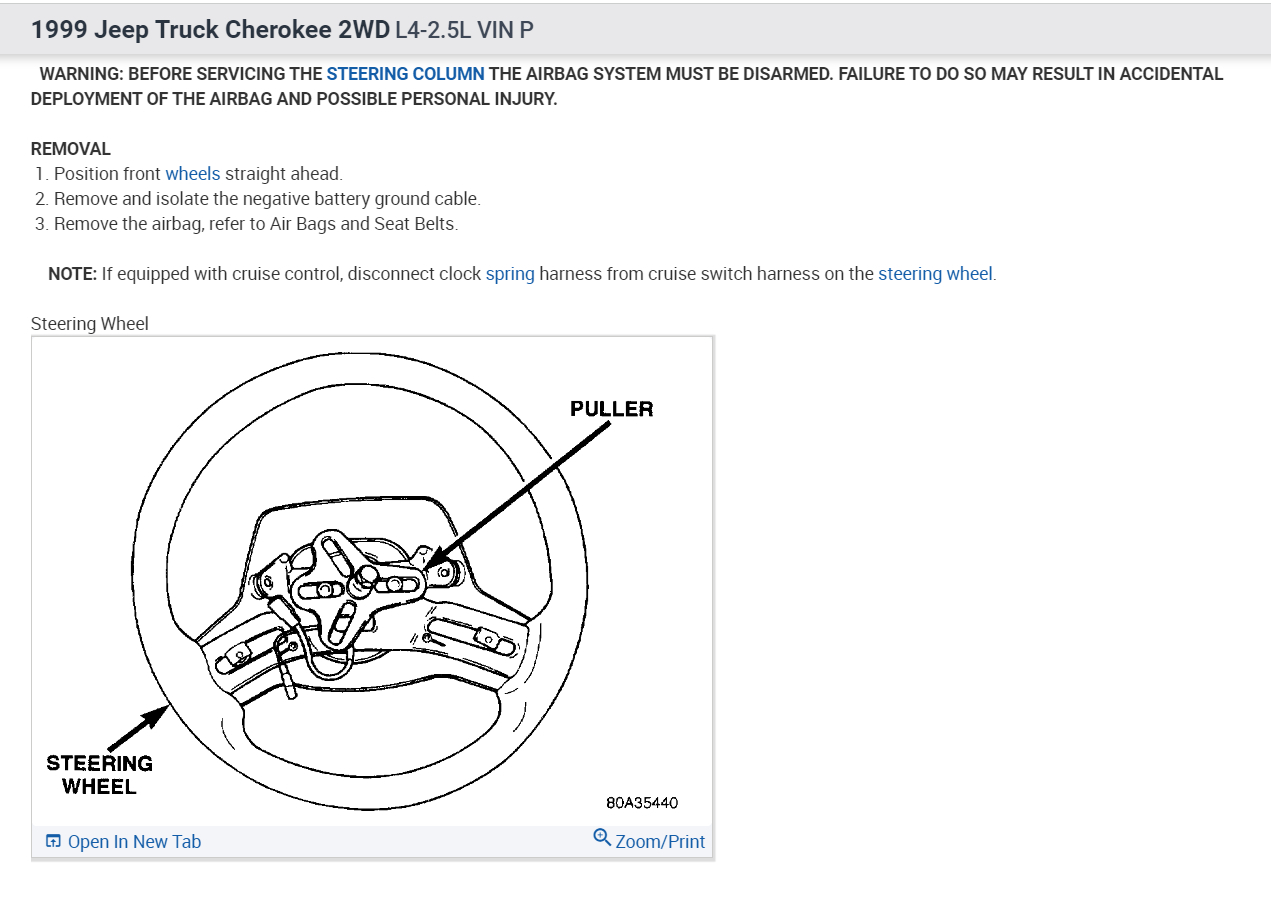 1999 jeep cherokee, steering wheel adjust up and down has lock in one place seem like a cable has come loose. Is that a hard fix.