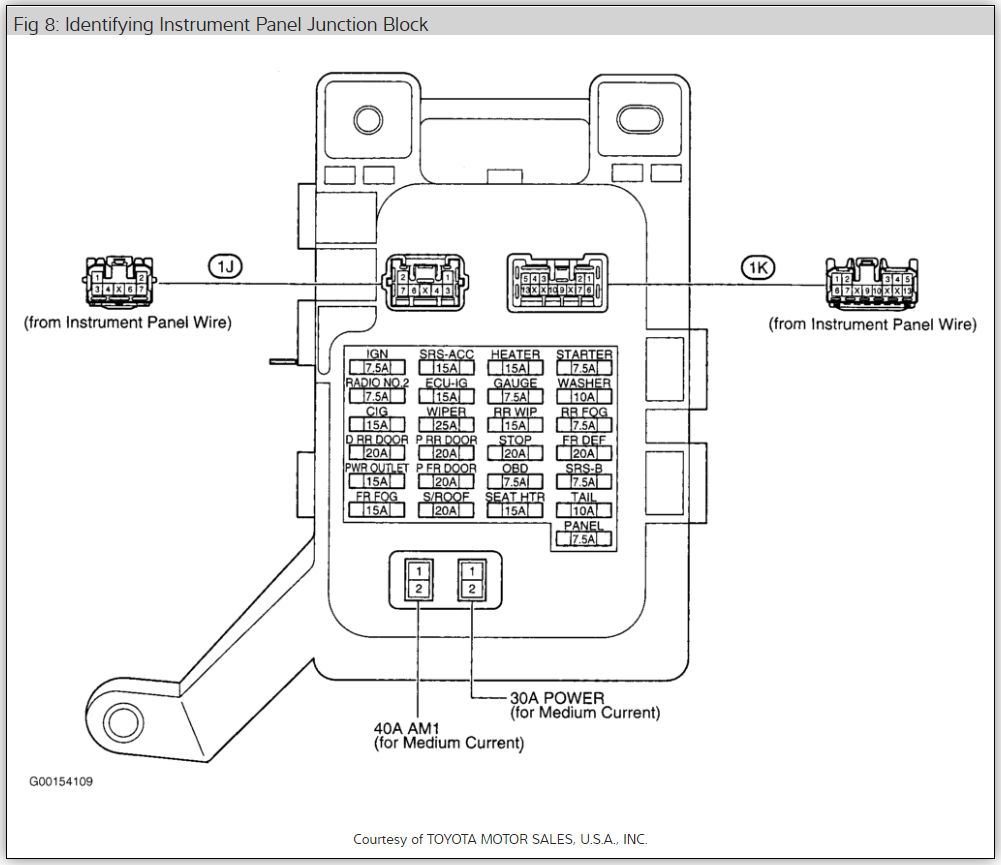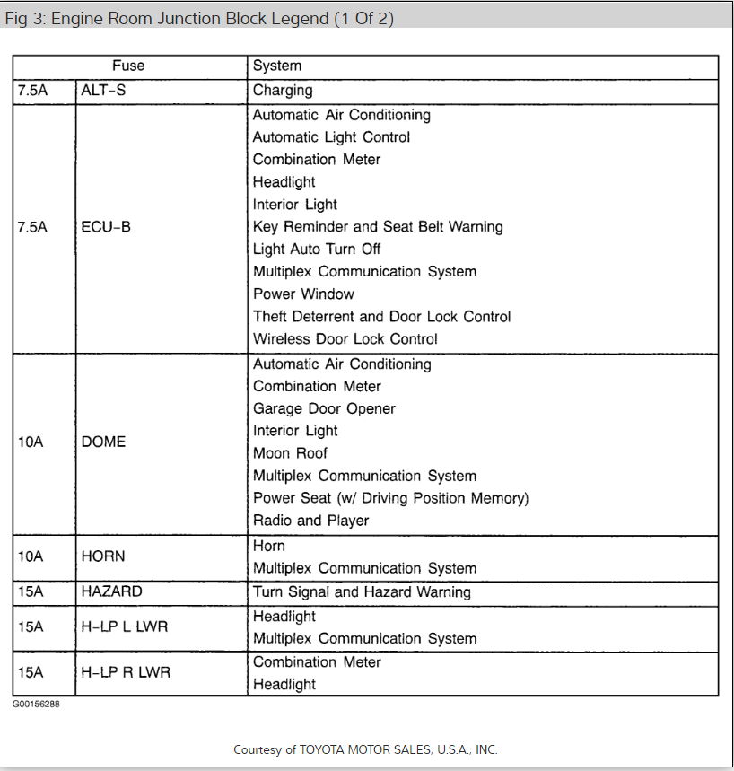 Here is the entire fuse panel location and identification so you can look for yourself.