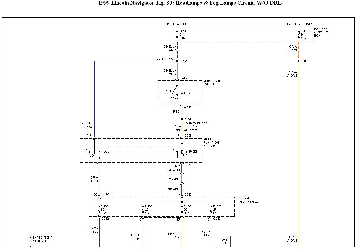 I have a 1999 Navigator. The headlights quit working. The parking lights work but will not turn of with the switch unless I re-start and turn off while engine is running. All the fuse's are good and the bulbs were replaced.