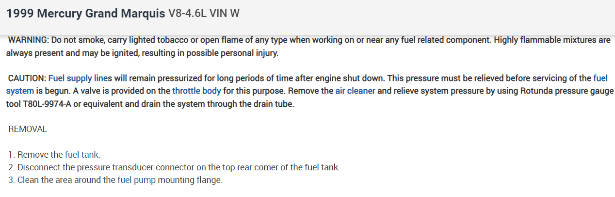 We have a 1999 Mercury Grand Marquis 4.6L- recently the car wouldn't start. We have changed the fuel filter, fuel pump and the fuel pump relay. The car starts now, but it will not stay running. It "bogs out" after a minute or so. If we give it gas, it turns off right away. A day or so later we went back out to try and turn it on again and the battery was dead. It's a newer battery. We think it has something to do w/ the changing of the fuel pump. When we removed the gas tank, there were two screw holes in it due to an after market amplifier being put in (they screwed it to the gas tank, by mistake) we put some JB Weld on it to seal the holes. Any suggestions as to why it won't stay running now? (Fuel pressure or sensor. Maybe?)Please help, it's our only vehicle.
