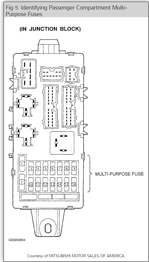 Where is the stereo fuse located in a Mitsubishi galant 1999