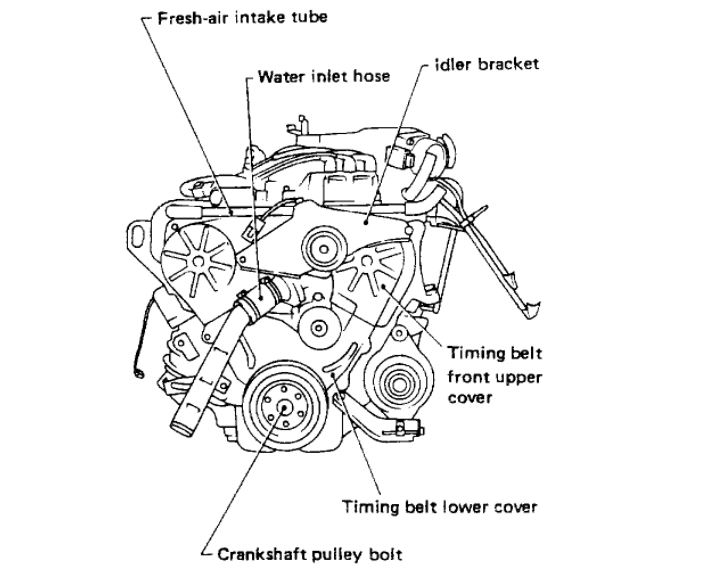 c Temporarily install crank pulley bolt on crankshaft so that crankshaft can be rotated.