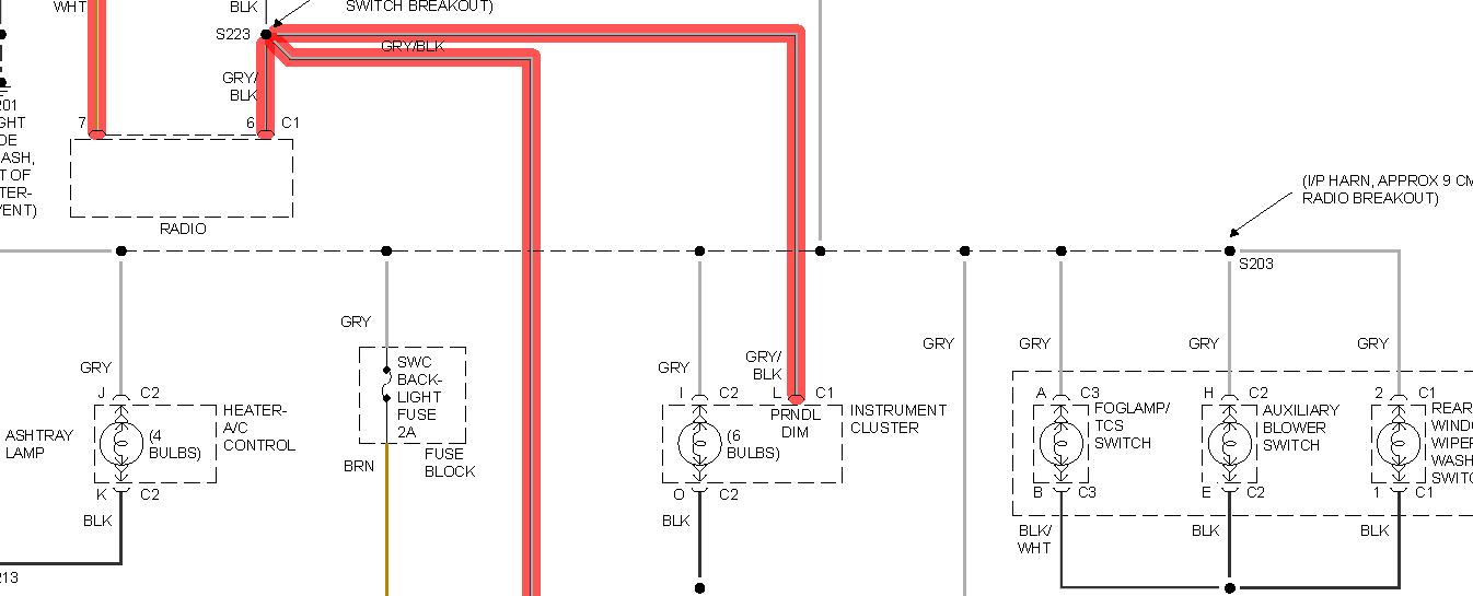 No dashboard lights, no running lights in back, brake lights work, turn signals work, reverse lights work. Lights all flash when doors are locked with keyfob