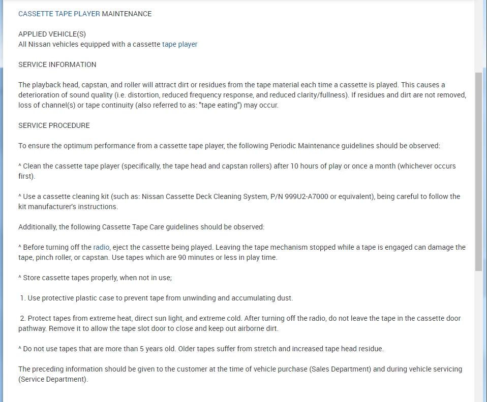 The tape deck in my vehicle listed above is making a clacking sound repeatedly. This action does not allow me to insert a cassette and if I manage to insert one, it is quickly ejected.