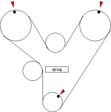 See if this helps. The two upper marks are tiny notches in the metal covers behind the cam sprockets. The crankshaft mark is a round dot in the sprocket next to one tooth. It's real hard to see.