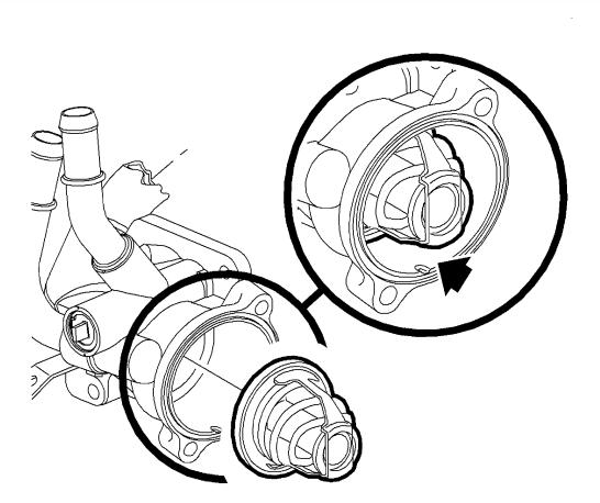 2. Install the thermostat housing bolts. Tighten the thermostat housing bolts to 18 ft. Lbs. (25 Nm).