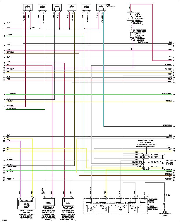I am giving you the wiring diagrams for the engine harness, there are 4 of them and you can lay them out to make one big pic starting left to right. Note they are labeled, 1of4, 2of4, and so on. Starting with number one on the left line up the wires on the right side of page to number two wires on left side of page and so on. You will have entire wywtem with all snesors. This will help you figure out if the sensors are wired up right as they have descirption of enach sensor.