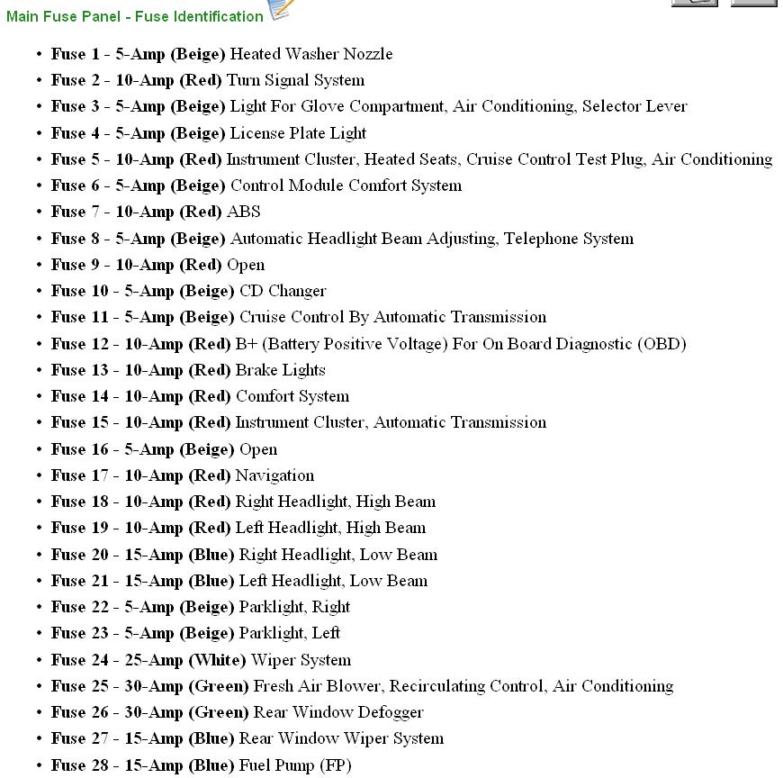 Fuse 3 - 5-Amp (Beige) Light For Glove Compartment, Air Conditioning, Selector Lever