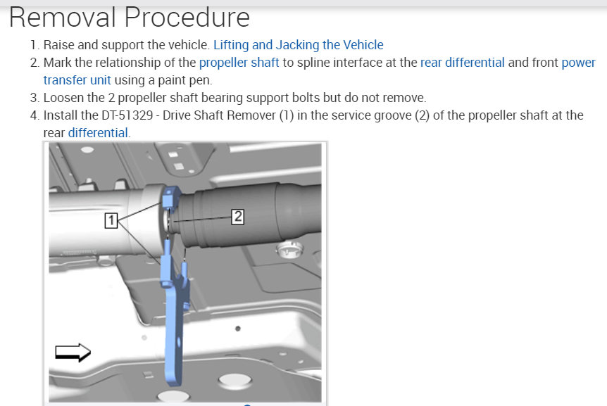 Need to replace drive shaft due to a broken center support bearing. I'm wondering how to remove the drive shaft from the transactical and differential. I'm sure putting the new one in would just be reverse of removal.