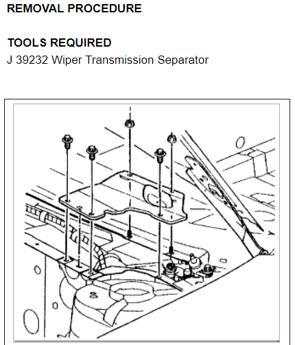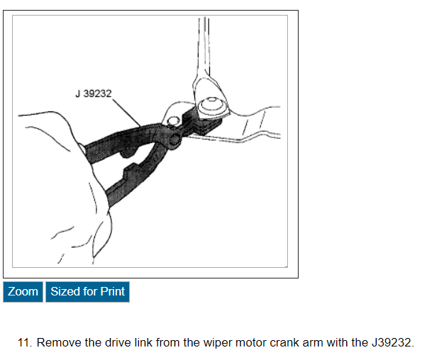 Remove the drive link from the wiper motor crank arm with the J39232.
