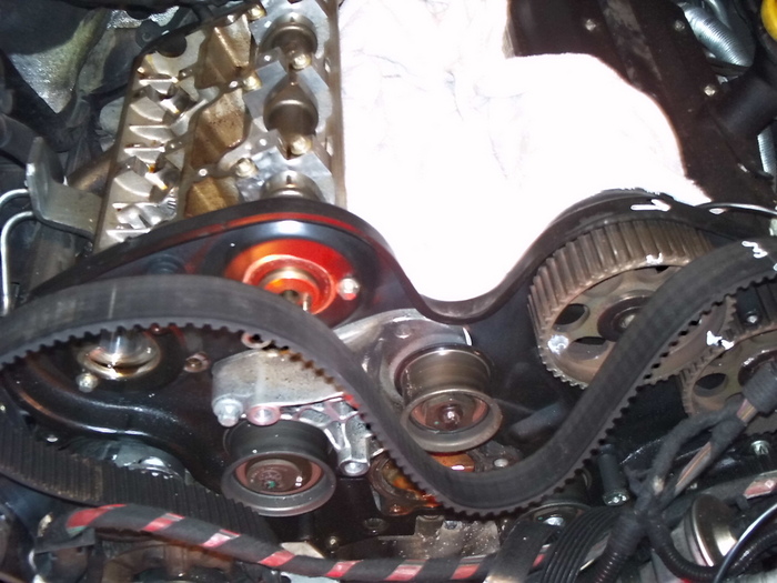 Questioner is a retired car-salesman who turned plenty of wrenches over the years. His car has dual overhead cams. It is a cast iron block with aluminum/alloy heads. I was relatively problem-free since bought with 7,000 miles [lil’ old lady lease-return]. It just turned 90,000 miles. Dealer says they replaced the timing belt and tensioner around 20k; also repairing an oil cooler leak under the intake plenum [car developed a minor leak worsening and later found to be heater control].