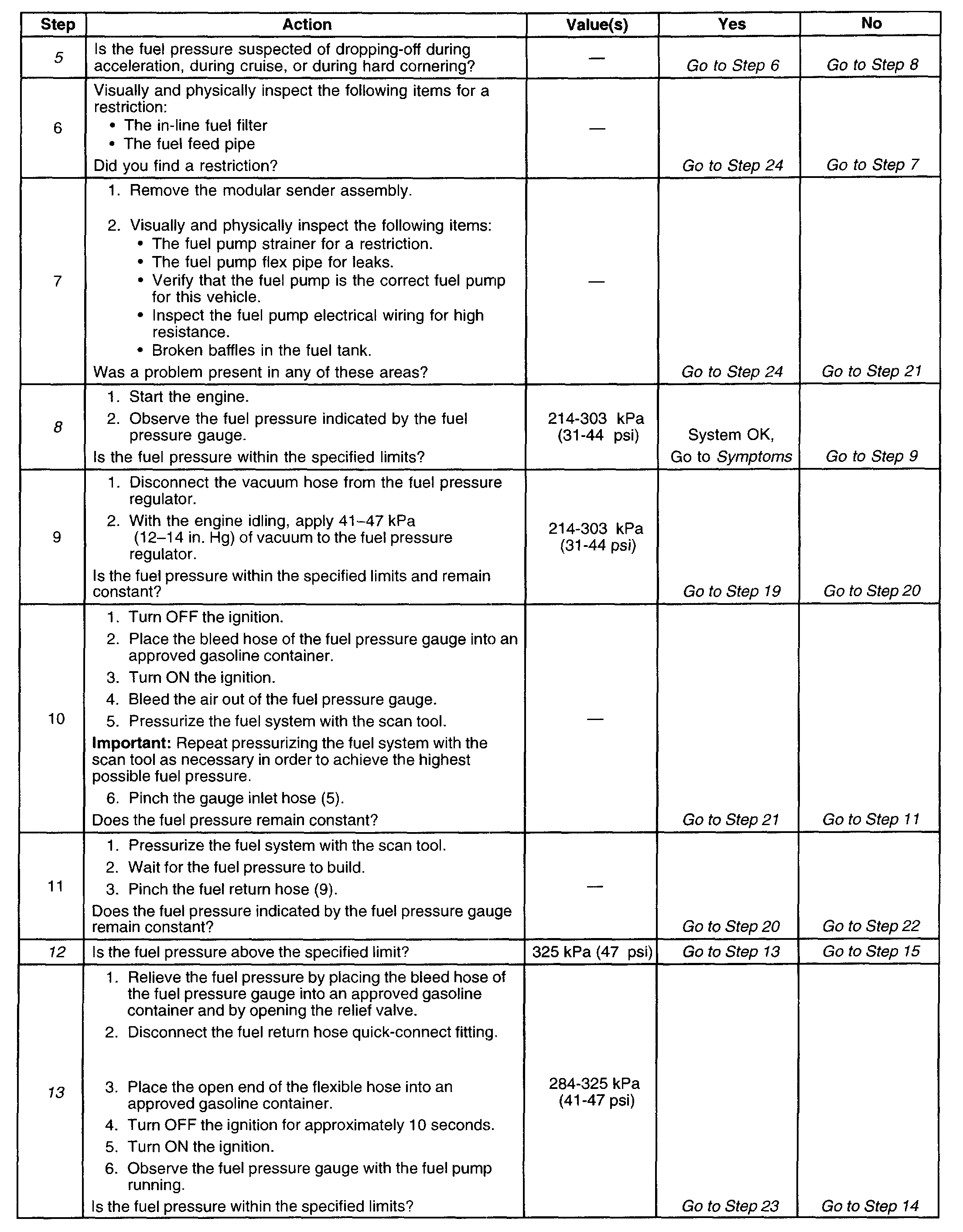 Vehicle Powertrain Management Fuel Delivery and Air Induction Fuel Pump Fuel Pressure Testing and Inspection Component Tests and General Diagnostics Fuel System Diagnosis