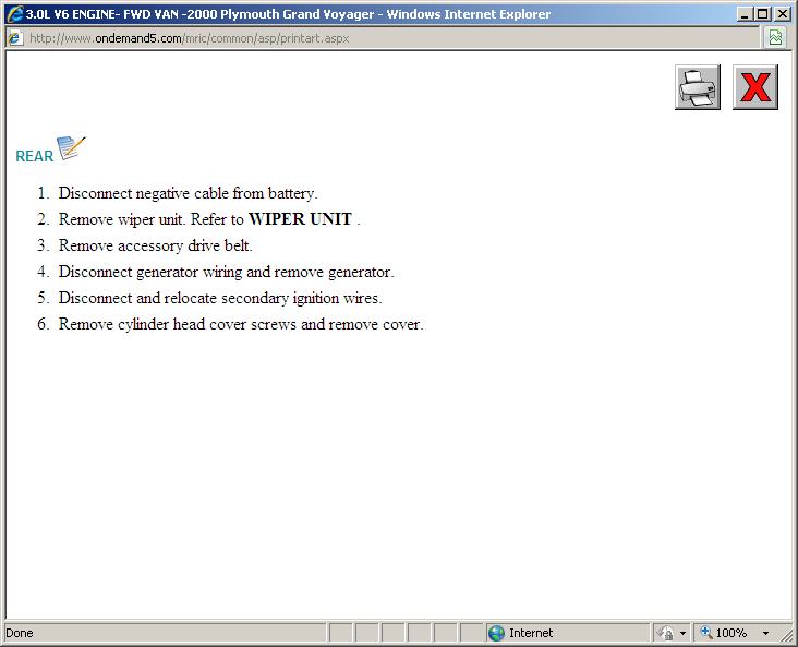 I posted what I have for replacing the rear valve cover gasket its on mitchel ondemnd. It says to remove the wiper unit also I have notice even for some of the chrsyler vans it says to remove the wiper unit to replace the power steering pump. Iam not sure if you do or dont. It doesnt say to remove the intake manifold though.I would rather deal with the wiper then the intake though. As far as repair manuals I have always liked chilton myself.