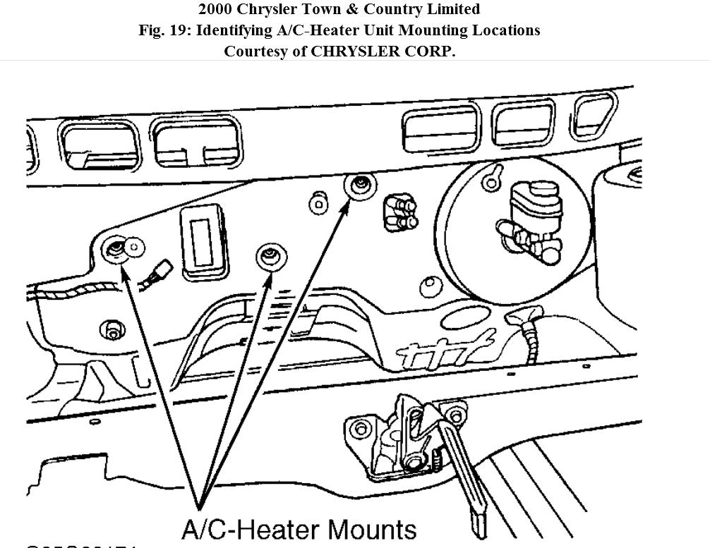 10. Remove 3 nuts securing A/C-heater unit to dash panel. See Fig. 19.