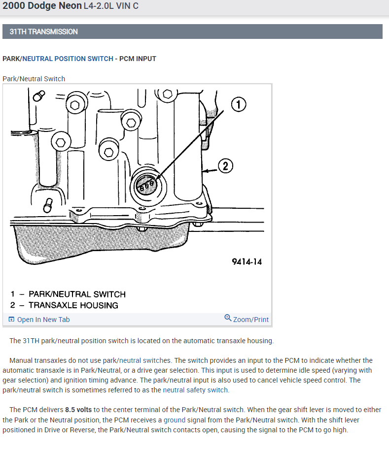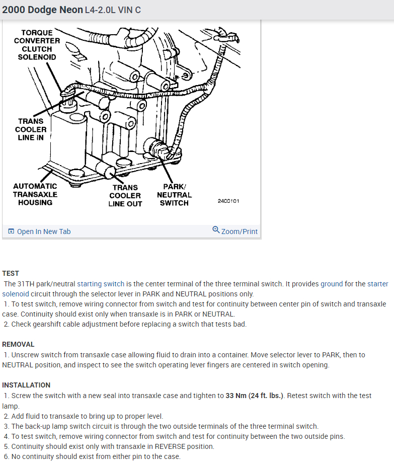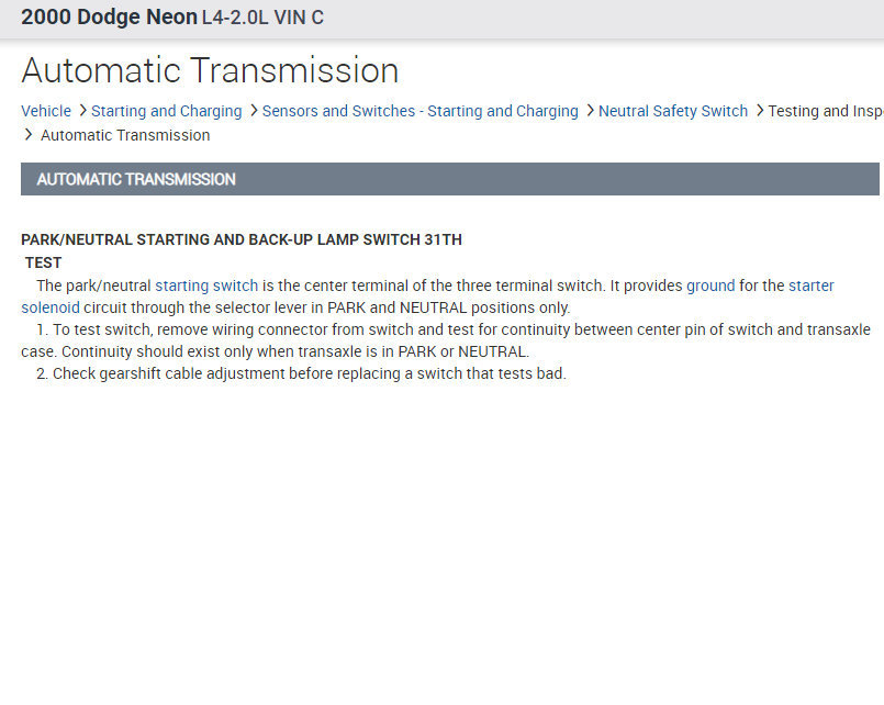 Hello I have been looking for the safety neutral switch on my dodge neon 2000 and I can't locate it I look every where by the transmission can u help