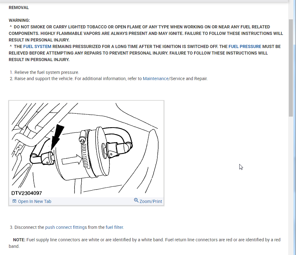 Engine starts briefly, stalls, then won't fire at all. Possible fuel problem? Where is the fuel filter located? What is acceptable pressure range?