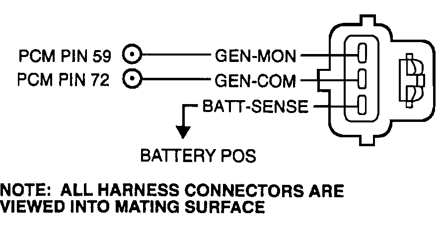 battery terminal and generator harness connector BATT SENSE terminal. If voltage is withinÂ.5 volt (plus or minus) of battery voltage measurement,  go to next step. If voltage is not withinÂ.5 volt of battery voltage