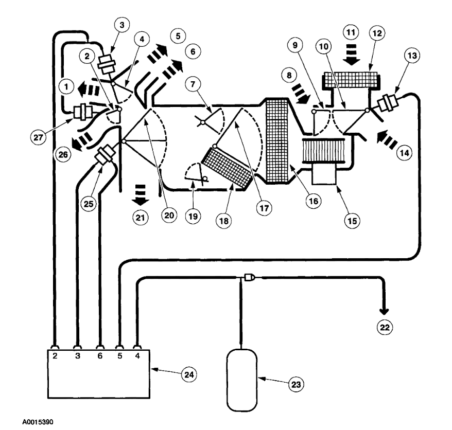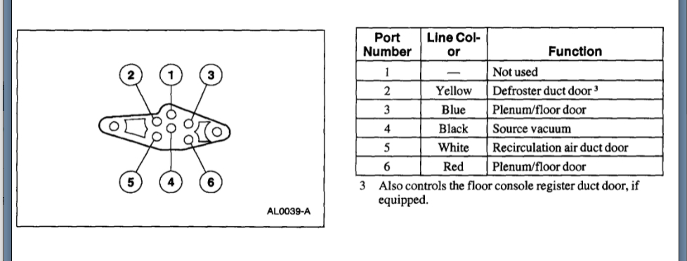 My question relates to the vacuum hose connections along the firewall. Where do they connect and their purpose. 2000 Ford Taurus SE VIN Code U. I recently replaced my spark plugs and wires. After removing the passenger side cowl I noticed a loose vacuum hose. I thought I could find the other end of the hose because it is approximately 6 inches long, and the connector on the vacuum feed line (clipped to the cowl) points towards the firewall. In the interim, I have plugged the connection that runs under the cow. The problem I hope this will fix pertains to the AC/Heat air direction switch, as it will only blow air out the windshield vents.