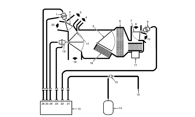 When I Turn The Heater/defroster On In The Front Of The Cabin It Only Blows Cold Air. Also If I Toggle The Controls From Either Hot->cold Or...