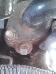 At least I believe this is a bleed valve right underneath where I put the thermostat in. Notice the square nut, is that a bleed screw because if not I already let her run for about 45 min with the radiator cap off and still no heat, the pipe shown there also is extreamly hot so I'm running out of ideas.