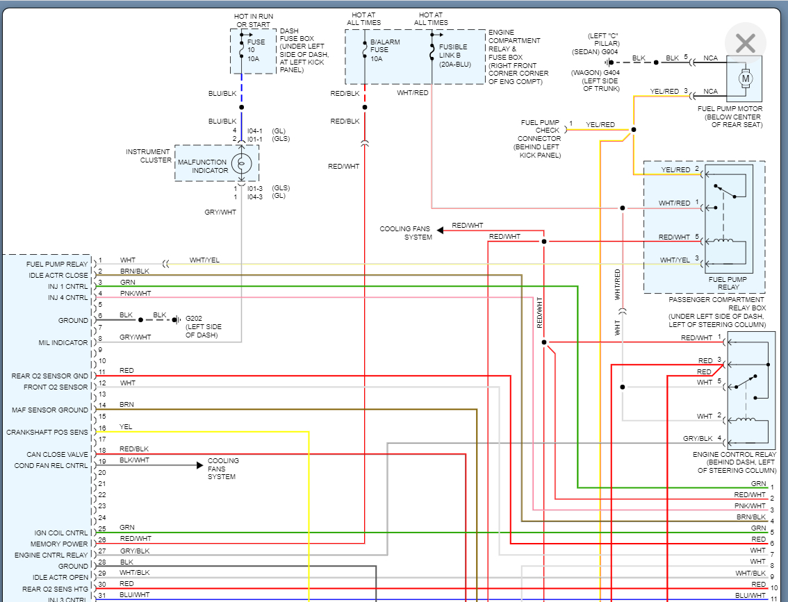 The fuse for the fuel pump relay is not a traditional fuse. This is called a fusible link. I am attaching the wiring diagram and the location of the link. Basically, this is a piece of wire that is thin enough that if there is an issue the wire actually breaks rather than an issue with the component it is protecting. It does the exact same thing as a fuse but just looks different.