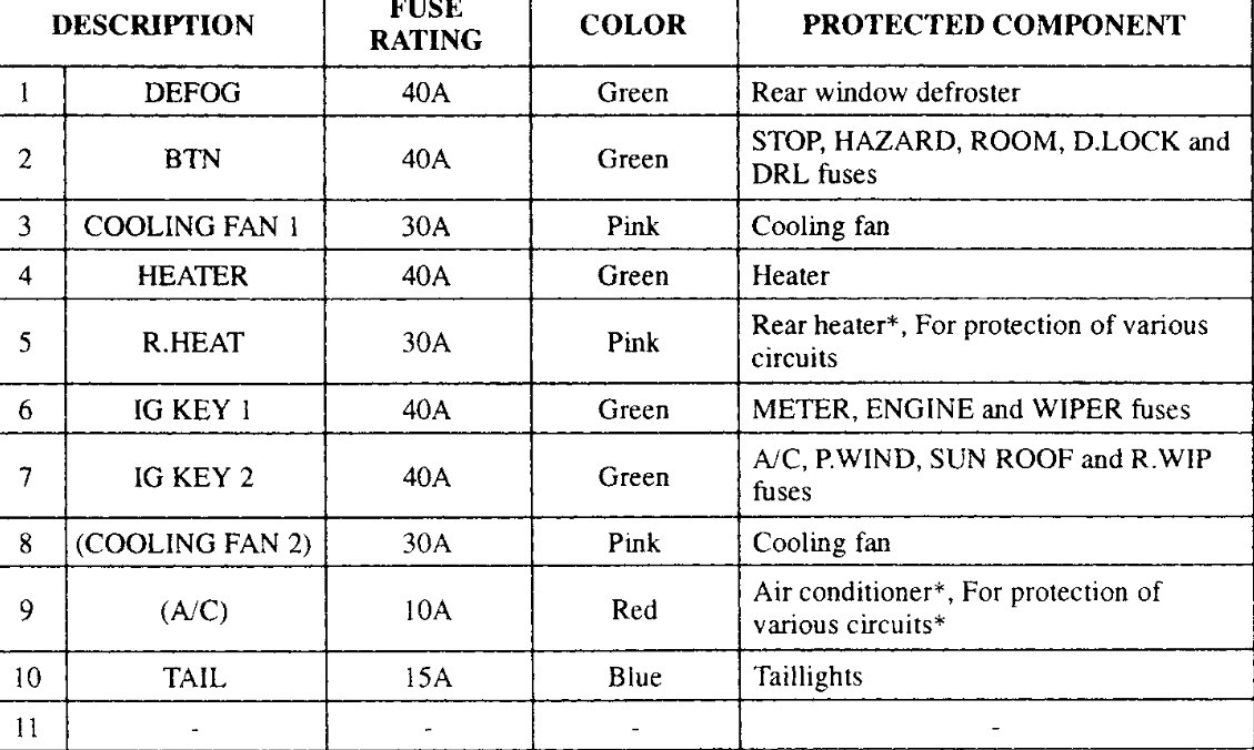 Need to change fuses but when I bought car it had no fuse cover so I don't know which fuse is which. The only picture that shows the correct fuse box is on a post here on your web site but picture only shows the fuses there is no list of what each fuse is for and what size fuse goes in each place. If you can help me with a picture of fuse box and the chart that tells me what each one is for and size fuse it needs I would be very grateful