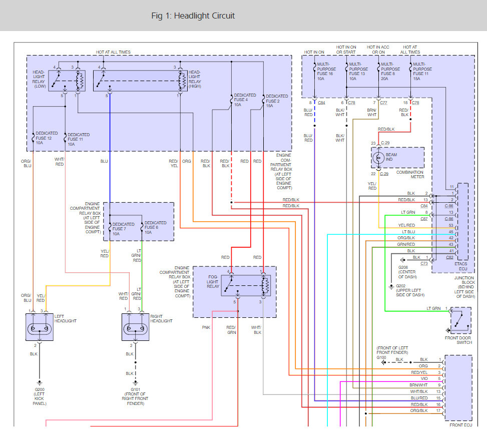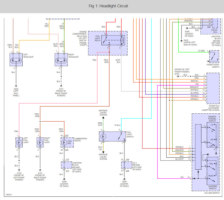 All of these were working fine just before this problem happened, whatever it is. All of these stopped working simultaneously. I have checked all of the fuses, replaced the turn signal lever, and replaced the ETACS behind the main fuse box in the dashboard but none of that made any difference. I cant figure out what all of these systems have in common. Is there a common ground wire, or do they all run though some connector in the wiring harness or what else could it be?