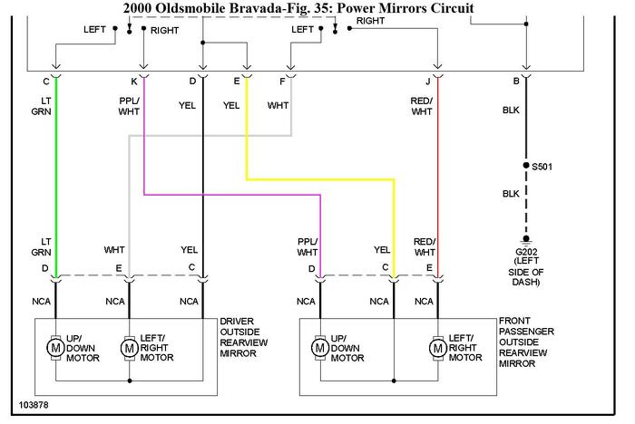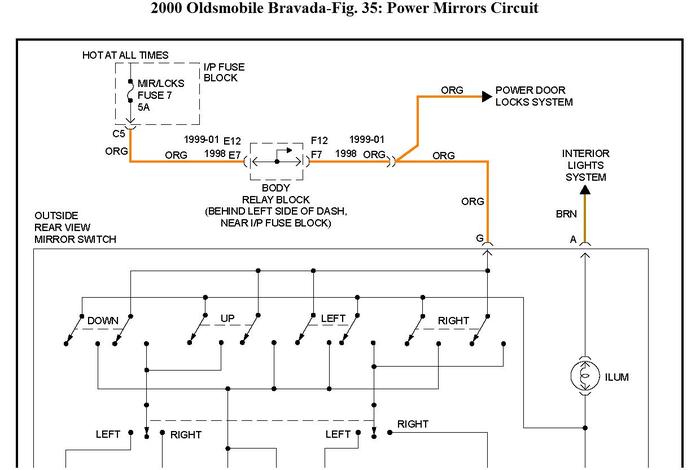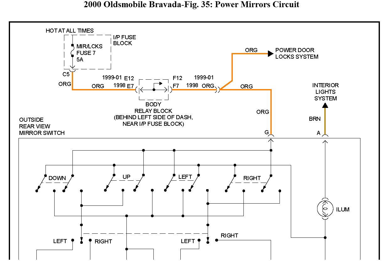 Hello. (Florida vehicle. So, its never been exposed to insane cold) the electric sideview mirrors on my 2000 oldsmobile bravada have no movement with adju switch. Its not the fuse as the locks works and they both seem to be on the same fuse.I am good with tools and a meter be it a multimeter or 12volt auto tester. Just need help on where to look. I just got this vehicle and it is in otherwise EXCELLENT condition in and out. Its fantastic inside and out and has all the conveniences of a luxury car. Which I love. Thanks for the help