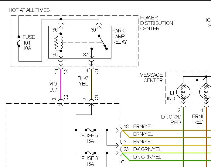 In the diagram, brown wire with yellow tracer is voltage for the tail lamp in question. Use a voltage tester at the rear, check for voltage, headlamp switch on. If no voltage check fuse 5--15 amp.