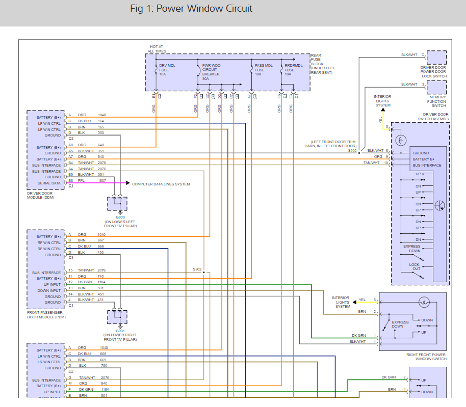 My car's door locks, power windows and courtesy lights don't work. The buttons on the door or key fob will not work. The radio stays on after you open the door also. Power mirrors do work. Checked and cleaned ground bus at the drivers kick plate. Checked wires in the door jam. All okay. Redid connection at tan and white wires under the drivers seat. What am I missing? Checked all fuses too.