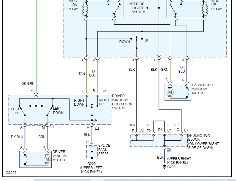 power supply to the green and orange wires. All black wires are grounded. Voltmeter connected to the same ground. Positive voltmeter is connected to the wire that is supposed to be providing power based on the position of the switch. Both up and down wires on the driver side tested good, but not the passenger switch. Does the passenger side switch on the driver side provide ground and not power? That would make sense if there's a relay before the driver side motor and the relay would be the one to supply the power when activated, but I'm just guessing here. Any help would be greatly appreciated.